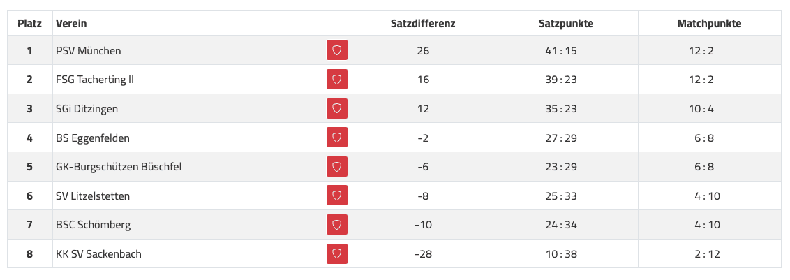 In der bewährten Startaufstellung mit Thorsten, Heiko und Mario ging es in den ersten Wettkampf gegen den Absteiger aus der 1. Bundesliga PSV München. Durch einen nervösen Start wurde das Match über die volle Länge von 5 Sätzen geschosssen wobei München am Ende knapp die Oberhand behielt.