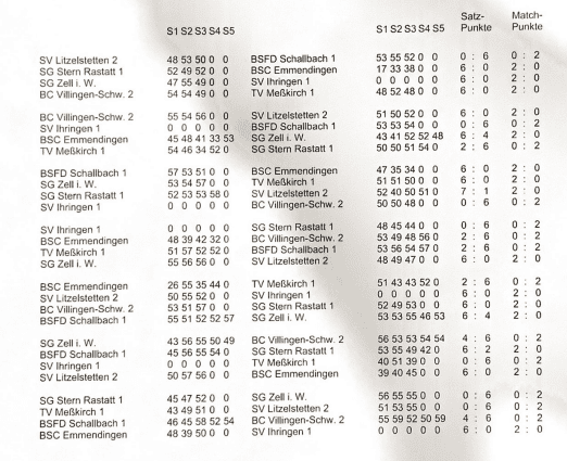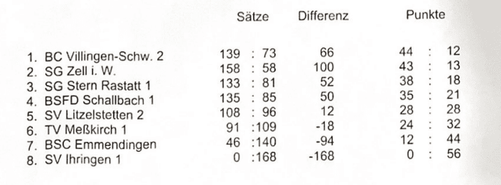 Dann kam das südbadische Duell gegen Riegel. Hier machte Riegel kurzen Prozess: 56:57, 54-58, 54-57. Drei Mal verloren, 6:0 für Riegel, aber trotzdem immer noch Tabellenplatz 1.
