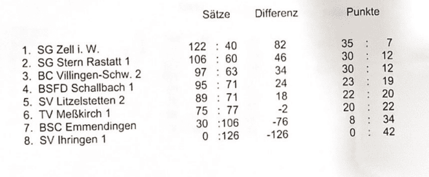 Nach der zweiten kleinen Pause haben sie dann wieder durchgewechselt und konnten auch hier wieder entspannt gegen ein Freilos von SV Ihringen einsteigen. Danach konnten sie auch wieder mit jeweils 6:0 gegen BSC Emmendingen und TV Meßkirch gewinnen und hatten damit den 5. Platz sicher.